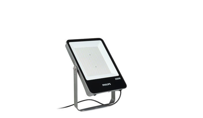 Projetor de alta potência Ledinaire, 496 mm x 52mm, Alumínio fundido em molde, Alumínio e cinza, Unidade de fonte de alimentação (aceso/apagado), 30000 lm, 250 W, 120 lm/W, 4000 K, (0.380,0.380) SDCM≤5, CRI80, Simétrica, IP65 | Proteção contra penetração de pó, à prova de jato, IK08 | 6 J, Classe de segurança I, 4/4 kV kV, Cabo de 1,0 m sem ficha, 3 polos, Fios/cabos flexíveis