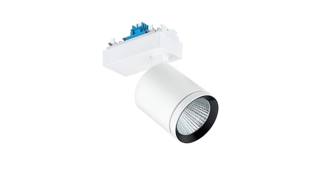 Performance, Maxos fusion variant (exposed driver box), Alumínio, Branco, Branco segurança (RAL9003), Sistema Interact Ready de regulação Dali com VLC (Visual Light Communication) preparado para iluminação, Comunicação por luz visível, 4900 lm, 39.5 W, 137 lm/W, 3000 K, (0.434,0.403)<2, CRI>90, Refletor metálico de alta refletância, feixe largo de 40 a 80 graus, IP20 | Proteção de dedos, IK02 | 0,2 J standard, Classe de segurança II, Calha 3C
